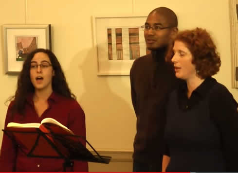 ![]() Left to right: Michelle Fuchs, Frank Mathis and Jessica Tremblay sing "Soave sia il vento" from the Mozart opera Cosi fan tutte.