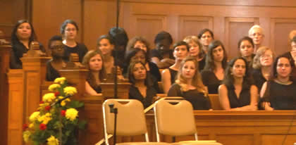 Lynn Yen, the executive director of the Foundation for the Revival of Classical Culture (FFTROCC) opened the event, discussing the importance of the occasion, and why the Schiller Institute chose to perform the four African American Spirituals, the Mozart “Requiem” and the Handel “Amen” chorus at the concert. She also introduced Jose Vega, a student with the Foundation, two Islamic leaders in the audience, and Terry Strada, of the 911 Families and a tireless fighter for Justice. Ms. Strada received a standing ovation for her work.