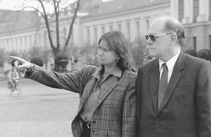 Helga and Lyndon LaRouche in Berlin in October, 1988. He was in Berlin to issue his forecast of the imminent breakup of the Soviet bloc, and to propose a reconstruction plan for all of Europe. |