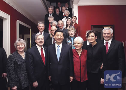 China President Xi Jinping, center, with old friends in Muscatine, Iowa. To the immediate left of Xi is U.S. Ambassador designate to China, Terry Branstad. |