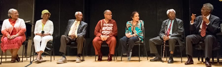 Symposium dialogue panelists, left to right: Elvira Green, Osceola Davis, Simon Estes, Gregory Hopkins, Eve Lee, William Wray and Dennis Speed. |