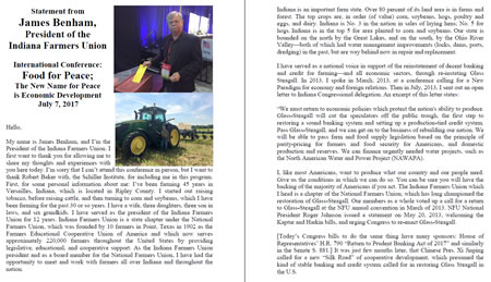James Benham, State President of the Indiana Farmers Union (PDF)