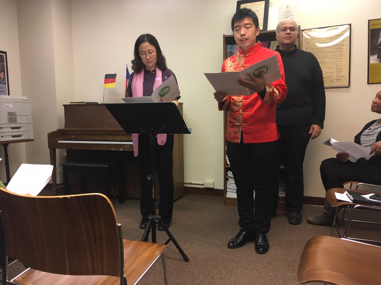 The program, which was composed around the universal genius of Confucius and Schiller, and those whom they have inspired, began with a musical “Happy Birthday,” John Sigerson’s choral arrangement of “An die Freude”, from Beethoven’s Ninth Symphony, followed by presentations of Schiller’s “Kolumbus”, and the Will Wertz translation.