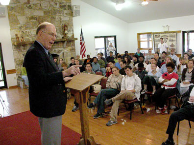 Lyndon LaRouche addressing cadre school.