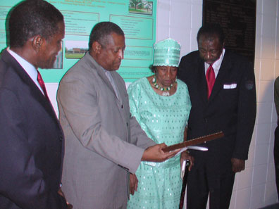 Presenting Mrs. Robinson with a certificate, from left to right, Mayor Johnny Ford of Tuskegee (left), Mayor James Perkins of Selma, Mrs. Robinson and her son, Bruce Boynton. |
