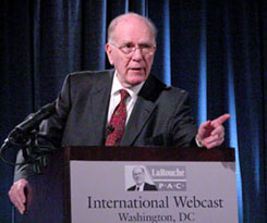 | EIRNS/Stuart Lewis Lyndon LaRouche at his July 25, 2007 Washington, D.C. webcast. |
