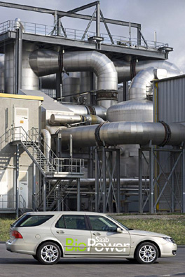 Saab“You don't have to say Fidel Castro is always right, to agree with his forecast that the attempt to cover a large portion of the energy gap with biofuels, would potentially cost the lives of 3 billion people.'” Here, a Saab 9-5 BioPower vehicle at an ethanol plant in Germany. |
