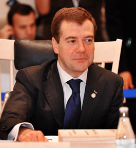 G8 PhotoRussian President Dmitri Medvedev in Hokkaido Toyako at the summit, July 8. He offered cooperation in nuclear energy to all countries that want it. |