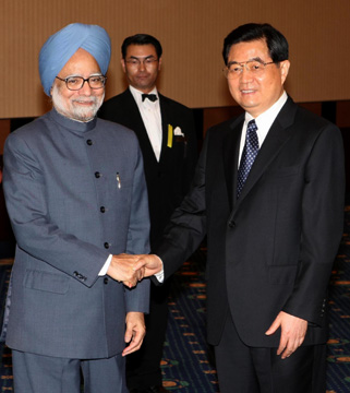 ![]() Government of India Indian Prime Minister Dr. Manmohan Singh and Chinese President Hu Jintau at the summit. Their bilateral discussions, including on close cooperation for nuclear energy development, were probably more significant than the multilateral summit itself. |