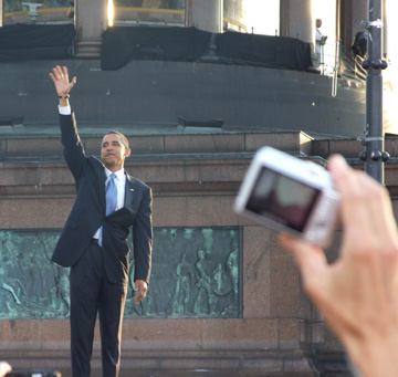For some, presidential candidate Barack Obama looks like the savior of American politics. But a visit to a campaign speech provides a sobering wake-up call: The Senator from Illinois does not live up to the myth his campaigners are trying to create. And after a stump speech in the Anacostia area of Washington, D.C., the article continues: Obama is surrounded by silence as he departs. The applause doesnt even carry as far as backstage. His shoes make a clicking sound on the wooden floor. The crowd ... was not merciless in its reaction, just honest. The Senator from Illinois is recognizably not the product which he is being sold as. At the beginning he was described as a rising African-American star. That was back when people were still being modest. Then the political marketing people reached up onto the top shelf, and started referring to him as the new Kennedy, the new Martin Luther King, Jr., the first black president.
