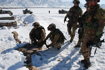 ![]() ISAF Under the new European Treaty—if it is ratified—member nations of the EU will be obliged to participate in “anti-terrorist” military actions, like that ongoing in Afghanistan, under the Treaty’s “Solidarity” clauses. Here, and Italian contingent in Afghanistan, Feb. 10, 2008. |