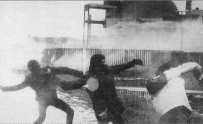 ![]() Masked terrorists assault a nuclear plant in Germany in 1986. The anti-nuclear hysteria succeeded in shutting down Germany's nuclear program; Germany was once the world's leader in the export of nuclear technology. |