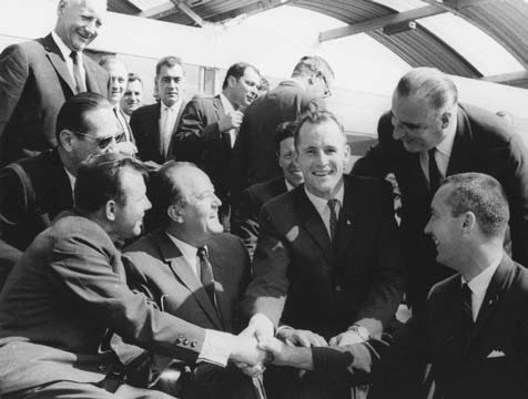 NASA “The Moon landing program of NASA was an inspiration. The Russian Soviet program was also an inspiration to the planet!” Shown: Soviet cosmonaut Yuri Gagarin, the first human in space (April 1961), meets U.S. Gemini 4 astronauts in Paris in June 1965. Also shown are U.S. Vice President Hubert Humphrey (seated) and French Premier Georges Pompidou (standing). |