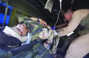 USAF/SSGT Myles D. Cullen “It is intrinsically a great crime against the very existence of all humanity, to launch, or continue a war which is either not necessary, or, a war which one does not intend to win in a reasonably finite range of lapsed time,” LaRouche writes. Shown: a medical technician checks the condition of a solider injured in a rocket attack in Baghdad, Iraq, during “Operation Iraqi Freedom,” August 2004. |