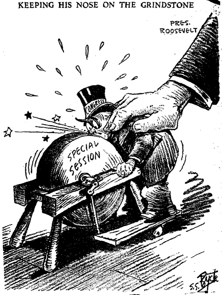 When Congress was “on a retreat” from the Depression in 1933, Roosevelt’s President Roosevelt called a special session of Congress, saying that unemployment could only be solved “by direct recruiting by the Government itself.” For the next three months, Roosevelt proposed, and Congress passed, Glass-Steagall and other key bills to deal with the crisis; this session became known as the Hundred Days. |