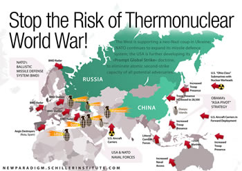We have made, emphatically, the point that the war danger comes from a couple of facts. One is, the fact that the NATO strategy has completely changed. If you remember in the beginning of the 1980s, when we had the middle-range missile crisis between the SS-20 and the Pershing 2, whereby you had NATO and the Warsaw Pact in a state of “launch on warning” all the time, and there could have been an accidental thermonuclear war, because the warning time of these two missile systems being headed toward each other in Central Europe was just too short! That if one side would have seen a missile on its radar, it would have had no choice but to launch the entire arsenal. And at that point, we had the Mutual Assured Destruction [MAD] doctrine, which was the idea that you can never use thermonuclear weapons, because if you use them, then everybody will be extinct as a result.