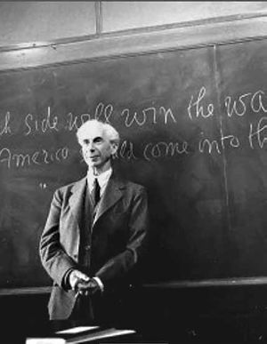 ![]() The literally Satanic Bertrand Russell ushered in a state of decadence, within the scientific community, and in public education and politics generally, which was specifically targeted to destroy the unique human characteristic of noetic power over the universe. Here he is shown before the blackboard at the University of California, where he taught from 1939 to 1942. |