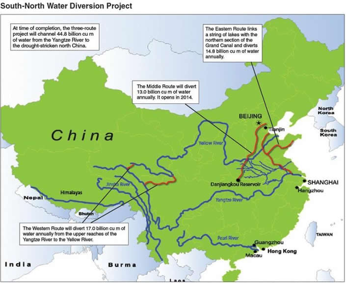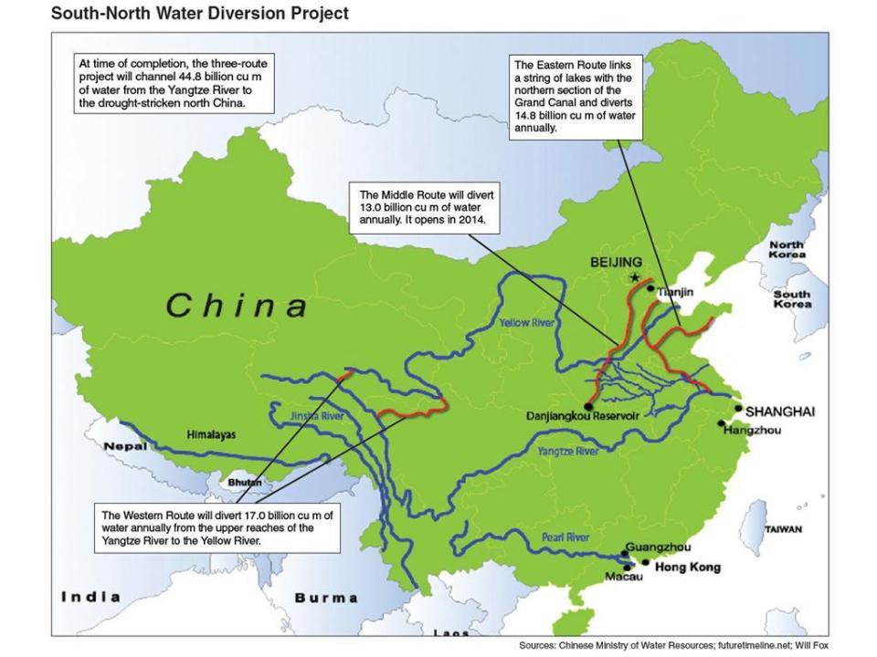 Now, the Eastern Route of this project, which brings water from the very water-rich spring region of the Yangtze River, to Anhui and Shandong and Jiansu provinces, filling up, on the one side, the Yellow River, and using irrigation from there. And then, secondly, the Middle Route, which brings water to Beijing and Tianjin. These two routes are already bringing large amounts of water to the dry areas, while the Western Route is still in the phase of planning.