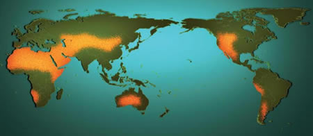 Here you see the world deserts (Figure 3), which actually grow from the Atlantic Coast of Africa, all the way through the Sahel Zone, the Sahara, the pan-Arab peninsula, the Middle Eastall the way to China, and naturally in the Southwest of America. But there are two completely different approaches to how you deal with that.