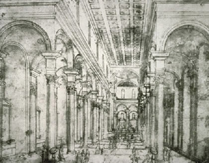 Perspective drawing for the Church of Santa Maria del Santo Spirito by Filippo Brunelleschi. |