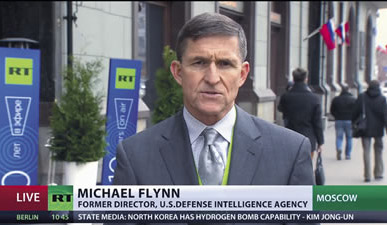 Former DIA chief Michael Flynn speaking to press in Moscow, where he attended a Russia Today conference on Dec. 10, 2015. |