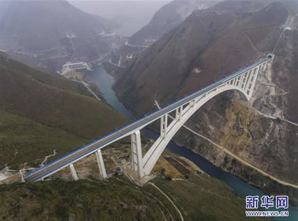 A high-speed railway bridge connecting Shanghai and Kunming in the mountainous province of Guizhou. |