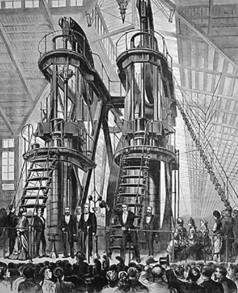 The Corliss steam engine at the 1876 centennial exposition. With the reintroduction of American System methods after the Civil War, such inventions spurred unprecedented industrial growth. |