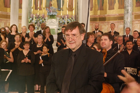 John Sigerson conducting the performance of Mozart's Requiem in a special memorial mass in memory of the victims of the 9-11 terrorist attacks at the Co-cathedral of St. Joseph in Brooklyn, New York, Sept. 11, 2016. |
