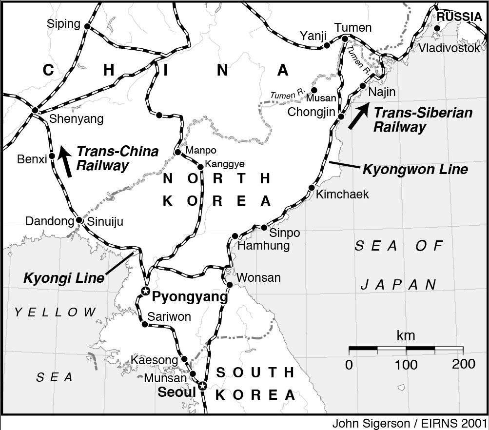 But then, unfortunately, the Clinton administration came to its end, and was replaced by the Bush and Cheney administration, which immediately started this talk which we know only too well from more recent days, that they couldn’t cooperate with a “brutal dictator.” That put a cloud over the whole project. But still, in 2002, South Korean President Kim Dae-jung adopted the “Iron Silk Road” proposal, initially proposed by Lyndon LaRouche, who had always maintained that the way to solve the Korea crisis is with the New Silk Road, that you have to build the railroad from Busan at the southern tip of South Korea, through North Korea, all the way to Rotterdam. And that once you have South Korean and North Korean engineers working together building railways, the real basis for peace could be established.