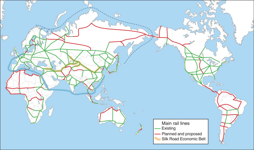 - The corridor from China to Central and Western Asia, intended to be extended through Iraq, Syria, Turkey, and into Europe and Africa;