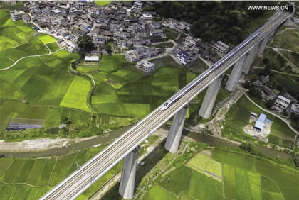A bullet train running on the Shanghai-Kunming high-speed railway in southwest China’s Guizhou Province. |