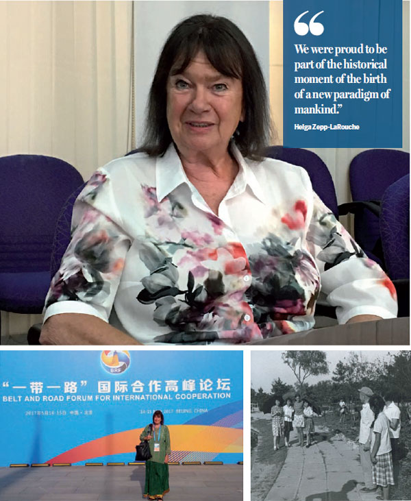 View full size Top: Helga Zepp-LaRouche speaks to China Daily in an interview. Chen Weihua / China Daily; Left: Helga Zepp-LaRouche poses for a photo during her attendance at the Belt and Road Forum for International Cooperation in Beijing in May. Provided to China Daily; Right: Helga Zepp-LaRouche in 1971 photo taken during her first trip to China. Provided to China Daily |
