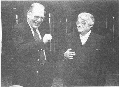 ![]() Lyndon LaRouche (left) and Norbert Brainin, the first violinist of the former Amadeus Quartet, and a collaborator with LaRouche in the development of the concept of motivic thorough-composition. |
