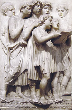A segment of Luca della Robbia’s choir loft (Cantoria) from the Renaissance Florence cathedral (Duomo). |