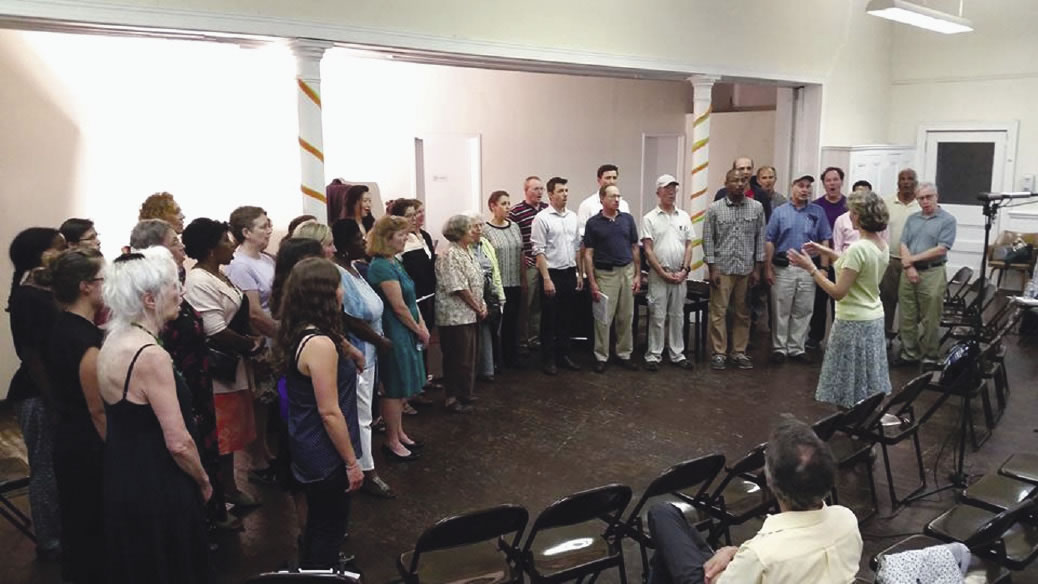 The New York Community Chorus rehearsing under the baton of Diane Sare. |