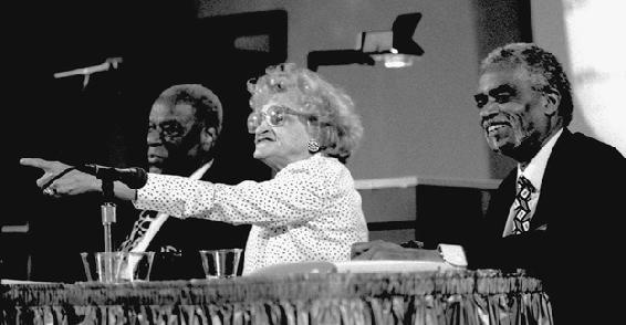 EIRNS/Stuart Lewis Sylvia Olden Lee, speaking at a May 28, 1994 National Music Conference in Washington, D.C., entitled “For a Marian Anderson National Conservatory of Music Movement.” It was held at Rankin Chapel at Howard University. |