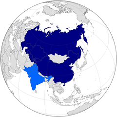 Map of SCO member nations. Nations colored light blue were admitted on July 10, 2015 as full members; the dark blue were admitted by 2001. |