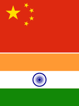 ![]() Flags of China (top) and India. |