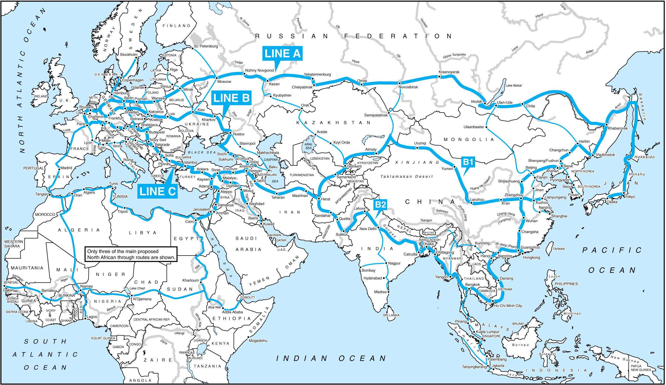 See full map of Eurasian Land Bridge, from EIR in 1992 View full size