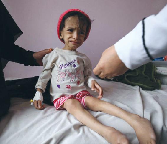 A malnourished 2-year-old girl receiving treatment at a hospital in Sana’a. |