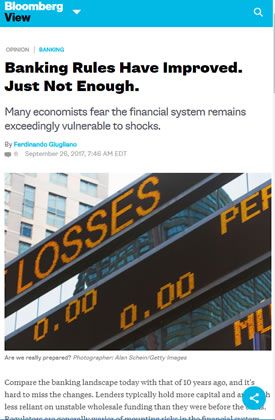 Giugliano cites presentations given at the Sept. 22 conference on "Ten Years After the Crisis: Looking Back, Looking Forward," sponsored by the Centre for Economic Policy Research, held (appropriately enough) at the Imperial College Business School in London. That must have been a doozy of a conference; according to the CEPR website, the opening address on financial stability was given by former Italian Prime Minister and British agent Mario Monti.