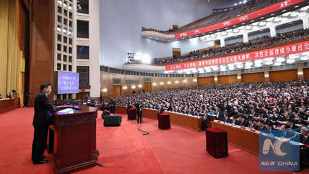 Xi Jinping delivers a report to the 19th National Congress of the Communist Party of China (CPC) on behalf of the 18th Central Committee of the CPC at the Great Hall of the People in Beijing, capital of China, Oct. 18, 2017. |