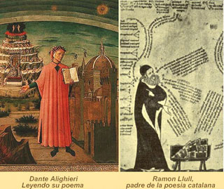 Raíces del lenguaje en el árabeAquí Lulio debió recurrir a una característica de la lengua árabe, cuya construcción, como la del sánscrito, se funda en raíces verbales de tres consonantes. Cada acción verbal, como "pensar" o "hacer el bien", se expresa a través de la conglomeración de tres consonantes, mismas que moduladas mediante vocales, de inmediato producen formas correspondientes del habla. Lulio toma los 100 nombres de Dios, como los enumeran los filósofos islámicos, y desarrolla las implicaciones de este hecho enraizado en el idioma árabe (y por tanto, en la mente). Esto es, que los nombres dados a Dios adjetivos o sustantivos se generan a partir de sus raíces verbales donde ellos son acciones. En su autobiografía, Lulio escribe que los nombres o dignidades de Dios significan una trinidad de acciones, de allí la Trinidad: "Ustedes no entienden, sarracenos, fieles a la fe de Mahoma, que las acciones que son propias de las dignidades divinas. . . son intrínsecas a Dios y eternas. Sin esas acciones, las dignidades mismas serían superfluas por toda eternidad. Las acciones del Bien son, digo yo, ser capaz de causar bondad; ser capaz de convertirse en bien; y hacer el bien. Igualmente, las acciones de la Grandeza son ser capaz de causar grandeza; ser capaz de hacerse grande; y ser capaz de rendir grandeza. Y así igual para todas las dignidades divinas. . . Si aceptamos, como es lo propio, que las acciones esenciales de las dignidades o atributos divinos son, en su igualdad y concordancia, intrínsecas y eternas, los cristianos demuestran con pruebas que allí existe una Trinidad de personas, el Padre, el Hijo y el Espíritu Santo, sen una única esencia y naturaleza divina" (Lulio: Vita coaetanea, 26). Lulio tuvo que crear nuevas palabras en su lengua materna, el catalán, y en latín, para expresar esta idea (algo que Dante Alighieri imitaría la forjar el idioma italiano). Pero esto no es una artimaña lingüística. Lo que Lulio descubrió como propio del lenguaje humano, lo reconoció como correspondiente a la característica de un lenguaje universal, que refleja las leyes universales, es decir, las leyes de Dios. Posteriormente desarrollaría esto de una forma más profunda, en su teoría de un lenguaje universal. Al igual que otros grandes pensadores en la tradición filosófica de Platón, Lulio usó el método del diálogo socrático para hacer entender la fe cristiana fundamental. Escribió el Liber de Sancto Spiritu (Libro del Espíritu Santo) en 1273–75, en el que presenta el diálogo entre un estudioso griego y otro latino en presencia de un musulmán; el Liber de Tartari et Christiani (Libro del tártaro y el cristiano) de 1282–85; la Disputatio fidelis et infidelis (Diálogo entre un creyente y un no creyente) de 1287–89: el Liber de quinque sapientibus (Libro de los cinco sabios) de 1294, que es un diálogo entre un sabio latino, uno griego, un nestoriano, un jacobita y un sarraceno; y la Disputatio Raimundi et Homeni Saraceni (Diálogo entre Raimundo y un sarraceno), de 1308. Diálogo socrático![]() Raimundo Lulio En su diálogo sobre Los tres sabios y el pagano (1274–76), uno de sus trabajos ecuménicos más hermosos, Lulio desarrolla su prueba de la Trinidad. Tomando nuevamente los atributos de las dignidades divinas, identificados metafóricamente en este trabajo como flores en un árbol, el sabio cristiano argumenta de esta forma: "Con el fin de probar la existencia de la Trinidad en Dios, tomamos primero las flores de la Bondad y la Grandeza del primer árbol, por medio de los cual probaremos, de acuerdo con las condiciones de los cinco árboles, que Dios necesariamente debe existir en trinidad. Y probando la existencia de la Trinidad, estaremos probando tres artículos, es decir los del Padre, del Hijo y del Espíritu Santo, y probaremos cómo esos tres artículos son una esencia y un Dios. . . "Está claro que entre más grande el bien, más fuertemente concuerda con la eternidad, el poder, la sabiduría, el amor; y mientras menor el bien, más cerca a la imperfección que es lo contrario de la perfección. Así, si en Dios existe un Bien procreador, que es bondad infinita, grandeza, eternidad, poder, sabiduría, amor, perfección; y que engendra un bien infinito en bondad, grandeza, poder, sabiduría, amor, perfección; y si de este bien que engendra y es engendrado origina también un bien infinito en bondad, grandeza, poder sabiduría, amor, perfección, entonces la flor es más grande en Dios, que lo que podría ser si las cosas mencionadas antes no existieran en Dios. . . Y puesto que, de acuerdo con las condiciones del árbol, uno debería concederle a Dios el Bien más grande, por consiguiente la Trinidad, por lo que hemos dicho, es demostrable". El sabio de Lulio plantea la Trinidad en base la prueba de una característica universal del lenguaje. Dios, para ser el Bien. necesariamente tiene que ser el Creador de la Bondad. La naturaleza del hombreEl Existente Necesario del sabio islámico al–Farabí es también Dios el Creador, que crea el universo como un proceso de autoreflexión, y causa que Su poder creativo sea activo en la humanidad. El Primer Intelecto, o Cielo, es entonces traído a la existencia, introduciendo así la multiplicidad, y a través de ella, la segunda y, así sucesivamente, todas las esferas celestiales, que se mueven en movimiento circular. Mediante este proceso se crea la más alta forma de existencia, el hombre, que se distingue de todas las demás especies en virtud del hecho de "que él tiene un alma, de la que emanan poderes. Por medio de ellos el alma crea su obra con órganos corporales. Además tiene otro poder, que es que, aún sin órganos corporales, puede crear. Este poder es la Razón". El intelecto activo o creativo de al–Farabí "siempre piensa primero de la más perfecta de las existencias". Al–Farabí establece "que el hombre, en cada cosa que produce su naturaleza, se acerca lo m