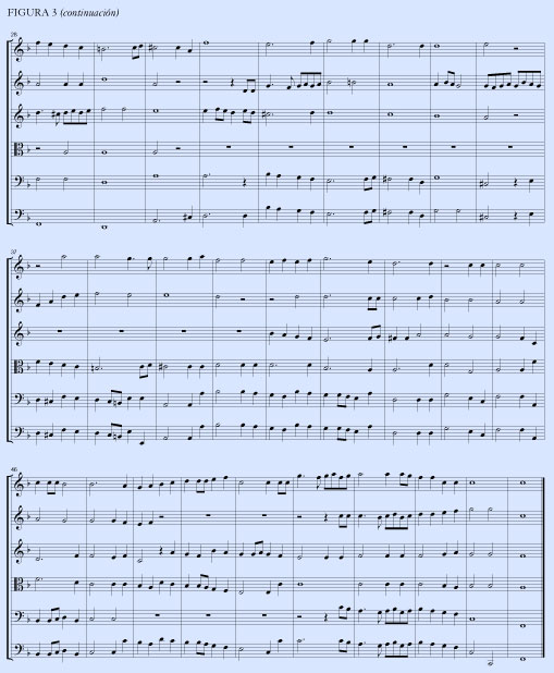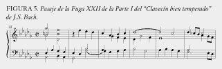 De hecho, la polifonía de Bach implica un tipo especial de armonía que la teoría de Rameau no puede explicar. Para recalcar esto, quiero tocarles un breve pasaje más adelante en la misma fuga en si menor (ver figura 5).