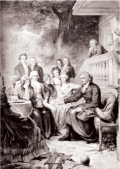 En 1794, el hermano mayor de Alejandro, Guillermo, se mudó con su esposa, Carolina von Dacheroden, a Weimar, a invitación del “poeta de la libertad”, dramaturgo e historiador Federico Schiller (1759–1805). Este sería el periodo definitivo en la vida de Guillermo; la colaboración intensa con Schiller y su círculo de amigos dio frutos más adelante en las reformas educativas humanistas de Guillermo como ministro de Educación en Prusia (1809–1810), en su fundación de la Universidad de Berlín y en sus profundos trabajos sobre la teoría del lenguaje. Pero su hermano menor, Alejandro, no era ajeno al círculo de Weimar. Seguido los visitaba, y estableció una relación especialmente estrecha con el poeta y científico naturalista Johann Wolfgang von Goethe, cuyo trabajo sobre la forma y la estructura subyacentes de las plantas y animales, resonó con fuerza en la metodología de “La unidad que procede de la multiplicidad”. En algunas biografías superficiales de Humboldt, se ha hecho mucha alharaca por un comentario despectivo que hace Schiller sobre él en una carta a su amigo íntimo, Christian Gottfried Körner, en 1797. “Su mente es así de fría, disectando todo lo que quiere que en la naturaleza se mida sin ninguna pudicia”, escribió Schiller, “cuando la naturaleza debe verse y sentirse en sus manifestaciones únicas y en sus leyes más elevadas. Con una impertinencia increíble, usa su fórmula científica, que no son más que palabras huecas y conceptos reducidos, como medida universal”. La respuesta de Körner fue un reproche apropiado para la malinterpretación de Schiller: “[La] lucha [de Humboldt] por medir y disectar anatómicamente [anatomieren] todo, se apoya en una aguda observación, y sin esto, no existen materiales útiles para el investigador de la naturaleza. . . Aunque es cierto que él busca ordenar los materiales dispersos en un todo, le presta atención a las hipótesis que expanden su perspectiva, y se plantea así nuevas preguntas sobre la naturaleza”. La adecuada observación de Guillermo sobre su hermano, era que, “Alejandro realmente intenta abarcarlo todo con el fin de explorar una cosa, lo que sólo puede hacerse abordándola desde todos los ángulos. Le tiene horror a los hechos simples”. Desde ese momento, y por el resto de su vida, Humboldt se enfrascó en una lucha contra los empiristas (“sólo los hechos, Madam”) de la escuela de Bacon, Hobbes y Hume, con la misma intensidad con la que trabaría combate contra el otro extremo, los “filósofos de la naturaleza” del Romanticismo alemán, quienes rechazaban cuantificaciones y mediciones exactas, y exaltaban los sentimientos y la intuición como la fuente del verdadero conocimiento del mundo natural. Esta última escuela, representada por los trabajos de F.W. Schelling (1775–1854), se hizo famosa por frases como “los bosques son el cabello de la bestia tierra”; no muy distinta de las tesis sobre Gaia hoy día. Si bien Schiller subestimó a Humboldt en esa ocasión (aunque Humboldt también fue el único científico invitado a contribuir con un ensayo en la revista filosófica de Schiller, Die Horen), no hay duda alguna de la alta estima y la profunda absorción de las ideas y el genio de Schiller por parte de Humboldt. En su introducción a Cosmos, Humboldt describe el origen de lo que llama una “filosofía de la naturaleza”, en términos que extrañamente nos recuerdan las Cartas sobre la educación estética del hombre, de Schiller: “Una comunión íntima con la naturaleza, y las emociones intensas y profundas que así despiertan, son, a su vez, la fuente de donde han surgido los primeros impulsos a la adoración y deificación de las fuerzas destructivas y conservadoras del universo. Pero en la medida en que el hombre, después de pasar por los diferentes niveles del desarrollo intelectual, arriba al libre disfrute de los poderes reguladores de la reflexión y aprende por un proceso gradual a separar, como lo estuviera, el mundo de las ideas del de las sensaciones, y no se conforma ya sólo con un vago presentimiento sobre la unidad armoniosa de las fuerzas de la naturaleza; el pensamiento comienza a cumplir su noble misión, y la observación, auxiliada por la razón, se empeña en rastrear los fenómenos hasta las causas que les dieron origen”. Humboldt dedicó uno de sus volumenes de investigaciones botánicas en las Américas a Goethe, y su libro sobre Colón y el descubrimiento de América, a Schiller. Humboldt resumió un punto crucial de su Cosmos con una cita de un poema de Schiller, “Der Spaziergang” (El Paseo) de 1795: “Aquí llegamos al punto en que, al contacto con el mundo sensible, el estímulo al placer se une a un deleite de característica distinta, un deleite que brota de las ideas. Aquel que en el conflicto de los elementos no se percibe como regido por el orden y la legitimidad, se sujeta a la razón. Y el hombre, como decía el poeta inmortal [Schiller], ‘procura el polo inmóvil en el vuelo de las apariencias’ ”. Entrenado en la Ecole PolytechniqueEn 1796, cuando murió su madre (su padre había muerto cuando él tenía 10 años), Humboldt recibió una herencia sustancial. Aunque su carrera en administración de minas le ofrecía magníficas perspectivas, renunció a todos sus cargos y se dedicó a prepararse para viajar por el mundo, en la primera oportunidad que surgiera para la ambición científica que había tenido desde niño. En 1797, se adiestró con los mejores botánicos y geólogos de Europa Central; en 1798, su camino lo llevó a París, donde estaba su hermano Guillermo como enviado de Prusia. En París, Alejandro dio conferencias magistrales sobre sus propias investigaciones y escritos, que ya eran considerables, conoció a las principales personalidades científicas de Francia (aquellas que no se embarcaron a Egipto con Napoleón ese año), e incluso se unió al equipo de investigaciones geodésicas d