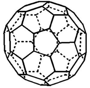 Poco después del descubrimiento de los cuasicristales, en 1985, se descubrieron los llamados fullerenos. La forma mas simple de fullereno consiste en 60 átomos de carbono, organizados de tal manera que cada uno se ubica en una esquina de un icosaedro truncado. El nombre de esta figura lo acuñó Kepler, quien continuó su "investigación de los cuasicristales" con esta figura en Harmonices mundi. Uno puede imaginar este orden de 60 átomos de carbono en esta estructura isosaédrica específica, como una especie de cristal en un espacio específicamente curvo; esto es, en la superficie de una esfera.