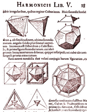 Esto explica el porqué Kepler dice, por ejemplo, en De fundamentis astrologiae certióribus, que ¡donde hay materia, hay geometría! Esta es una afirmación con la que Platón estaría de acuerdo. Aristóteles, sin embargo, como explica Kepler en su Harmonices mundi (Armonía del mundo), no puede reconocer el carácter arquetípico y el significado de las figuras cuantitativas, porque niega la creación del mundo. La razón de esto es que las figuras geométricas cobran significado, sólo si existe un "Creador" que creó la materia. La geometría, dice Kepler, le dio a Dios las imágenes para formar al mundo.