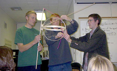 Las matemáticas escolares ¿Qué queremos decir con matemáticas escolares? LaRouche define esa estructura de creencias como el principal problema estratégico de nuestra época: no el Fondo Monetario Internacional, ni el problema de las guerras religiosas, ni la desintegración nacional, ni el Estado Nacional, ni la necesidad de un nuevo Renacimiento; ninguno de ellos. El problema estratégico número uno son las matemáticas escolares. ¿Por qué? Porque es la justificación, como supuesta ciencia, para sustituir la realidad por las matemáticas, para establecer una realidad virtual, mecanicista, en lugar de la realidad verdadera, y como tal, es la fuente original de la mayoría de los errores en el pensamiento estratégico. Todo el que ha tomado un curso de matemáticas de bachillerato, ha recibido la misma idea básica, con mayor o menor sofisticación. Primero que nada, se nos ha informado que el espacio tienen tres dimensiones: delante-atrás, izquierda-derecha, y arriba-abajo. Luego, con mayor sofisticación, esto mismo se describe con las coordenadas X,Y, y Z. Más aún, se presupone que el espacio es continuo, en otras palabras, que no hay grietas o interrupciones en ninguna parte, excepto quizás en la películas de Hollywood, donde de repente alguien da un paso y entra en “otra dimensión”, o algo por el estilo. Pero aparte de eso, el espacio se define como totalmente continuo en cada una de las tres direcciones distintas. Y dado que es continuo, también se supone que es infinitamente divisible. Tomamos cualquier pedazo de espacio en la dirección que se quiera, y como cualquie salchicha respetable, se puede rebanar tan fino como se quiera. Siempre y cuando el cuchillo sea lo suficientemente afilado, o si uno es un carnicero entrenado es decir, que se tienen un doctorado en matemáticasse puede rebanar tan delgado como se quiera, y es infinitamente divisible. Uno puede no tener el instrumento para rebanar ese último pedazo de salchicha, para cortarla a la mitad otra vez, pero nos aseguran que ése es sólo un problema del instrumento. Conceptualmente, se puede seguir dividiendo por siempre. Entonces, según las matemáticas escolares, existe un espacio tridimensional, y es continuo e infinitamente divisible. El siguiente supuesto, o axioma, es que en este espacio físico tenemos puntos, que son como átomos que existen como partículas elementales. De acuerdo a esta versión, si consideramos un cuerpo de cualquier especie un pedazo de papel, una manzana, o una personaencontramos que se compone de partículas elementales discretas. Eso constituye una especie de teoría de construcción-por-ladrillos del universo. De nuevo, quizás no tengamos un microscopio lo suficientemente potente para observar las más pequeñitas de las partes, pero a fin de cuentas, en cuanto a la concepción de marras, toda la realidad está constituida de eso. Un tercer elemento consiste en que tenemos una causalidad cinemática, que es explicar las cosas como si fueran una mesa de billar: viene una bola de billar, golpea una segunda bola y rebota. La segunda bola, a su vez, golpea una tercera y rebota en otra dirección. Esto se puede convertir en algo muy complejo, porque lo que estamos considerando no se trata solamente de dos o tres bolas de billar, sino de un “billar universal”, donde hay millones y billones de bolas de billar rebotando por todos lados. Más aún, todo esto no ocurre sobre una superficie plana, como en los billares ordinarios del vecindario, sino más bien en un espacio tridimensional. Una de las implicaciones que tiene esta concepción, es que eventualmente ocurre una cierta pérdida de energía cinética, debido al calor y a la fricción, etc., así que finalmente al sistema se le acaba la cuerda. En otras palabras, es un sistema entrópico, y por lo tanto, Dios tiene que intervenir periódicamente, como una especie de guardián del gran billar universal, para darle cuerda periódicamente. Entonces las bolas empiezan a rebotar por todos lados y a chocar entre sí nuevamente, para luego volver a perder cuerda lentamente otra vez dentro de un par de millones de años; y de nuevo, Dios tiene que hacer acto de presencia otra vez en el billar para componer las cosas. Así que esa es la idea de interacción causal en este sistema newtoniano entrópico. En tal universo, la causalidad es unidireccional, y va del pasado al presente y al futuro. Así mismo, el tiempo y el movimiento, al igual que el espacio, tambien son continuos. No hay interrupciones del tiempo; no hay interrupciones del movimiento. No sucede que al tiempo le dé hipo o cosas por el estilo. Así que el tiempo y el movimiento, al igual que el espacio, también son continuos y por lo tanto también son infinitamente divisibles. El matemático francés René Descartes diseño un sistema para determinar matemáticamente dónde están todas las bolas de billar en un momento dado en el tiempo, al cual se le llama el Sistema de coordenadas Cartesianas: los ejes X,Y, y Z, colocados a 90 grados respectivamente uno a otro.