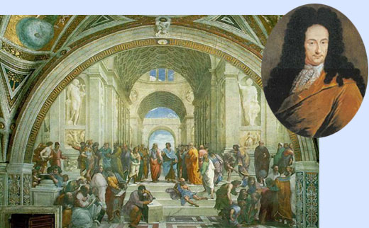 La Característica universal en Leibniz Por qué debemos enterrar las matemáticas escolares ![]() “La Escuela de Atenas”, Rafael, Stanza della Segnatura, Palacio Vaticano (Parte superior derecha : Gottfried W. Leibniz)