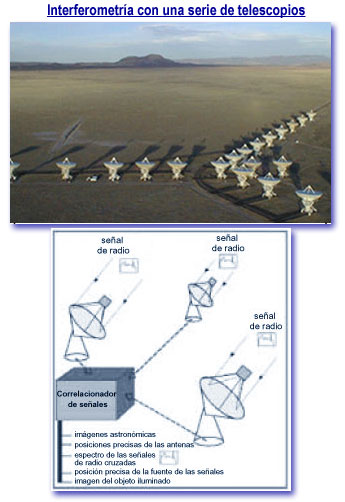 Aquí tienen otro método de observación astrofísica llamado interferometría (ver figura 9). Construyes toda una serie de instrumentos; en este caso radiotelescopios. Correlacionas las señales que reciben esos telescopios. Los astrónomos detectan ciertas pautas de correlación entre esas señales, y dicen: "Está bien, ahora veo el Cangrejo". De modo que este tipo de observación es una suerte de interpretación más bien elaborada de señales que provienen de toda una serie de instrumentos.